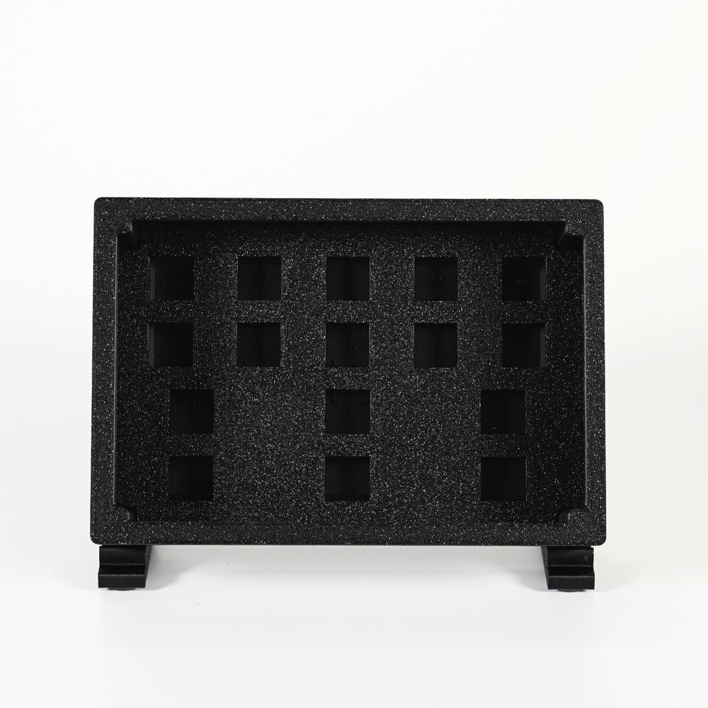 Each keycap box can hold 20 Keycaps with the selected plate or 10 keycaps & 2 space bars