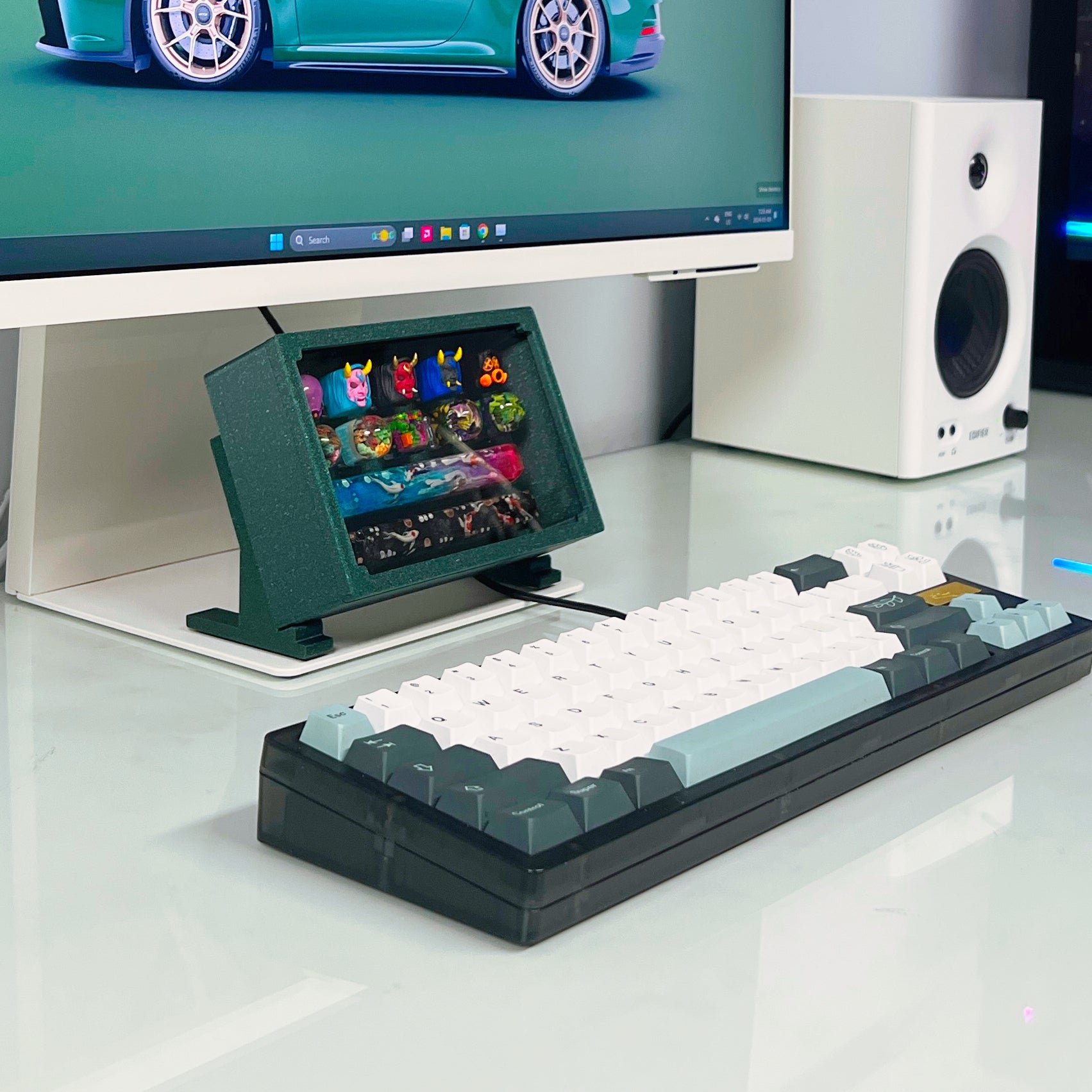 Floating design for displaying keycaps.